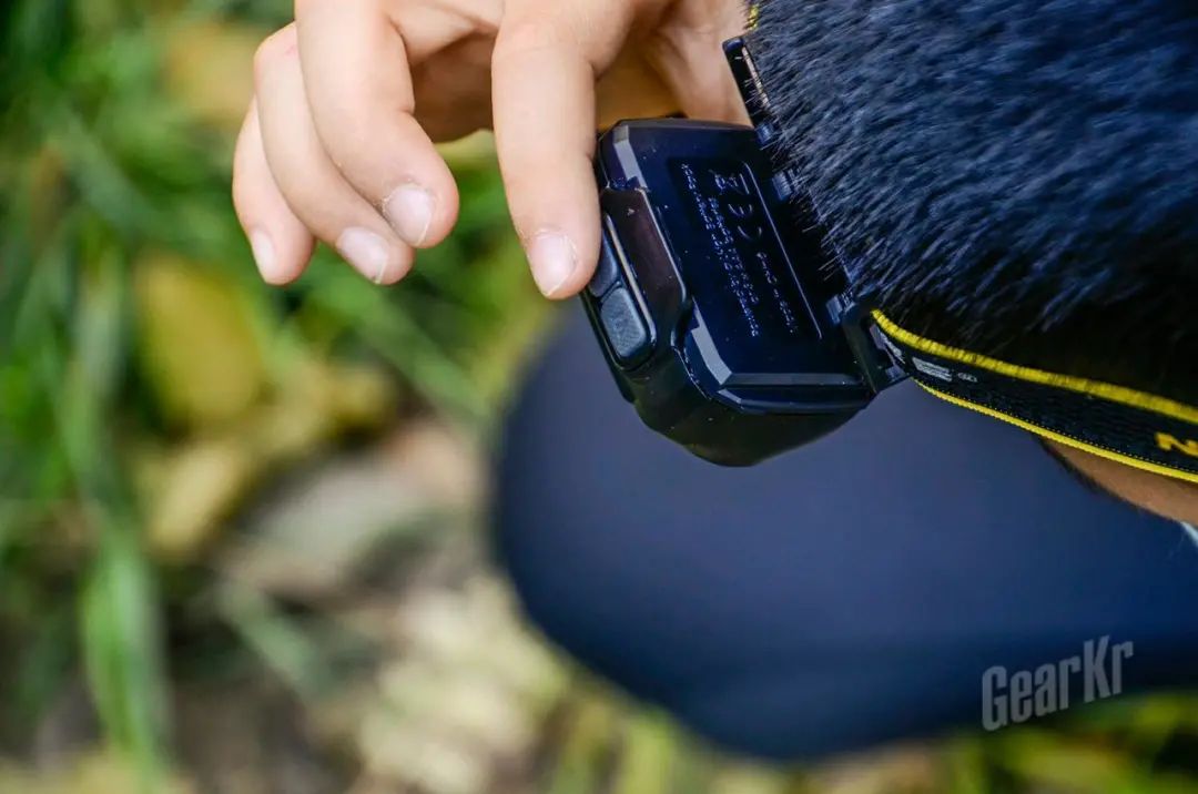 按键大小约为10×7mm,戴好头灯,手指可以比较方便地碰到开关,通过触感就能分辨出左右,跑步进行时也能很方便地换挡操作。