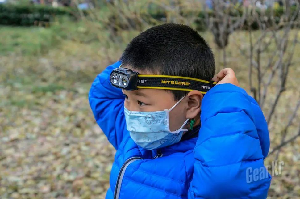 头灯带不受力的状态,其可调长度范围在44厘米~65厘米,可以满足大人小孩不同头围的人群使用,只要调节到位,跑动中非常稳定,完全不必担心改变位置,只管放心去跑。