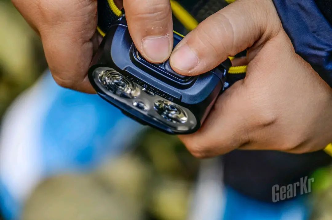 另外,关机状态,同时按动两个开关,能够实现开关的锁定,防止头灯在背包里受到撞击误开启。如需解锁,只需再次同时按动两个开关,泛光主灯亮起后,即表示已经解锁。