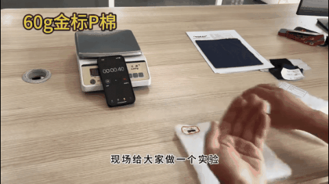 我们来做个测量帮你更清楚P棉保暖效果:实验选了60g的金标P棉和200g的普通棉作为对比。