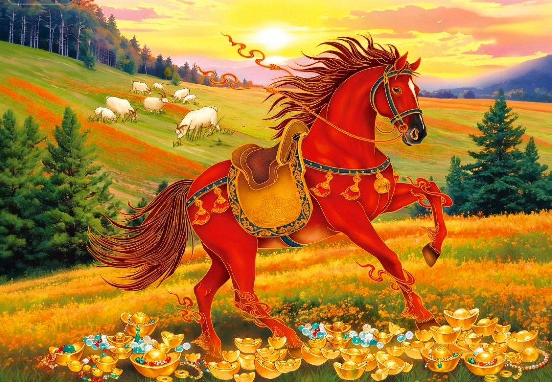 老人家常说“火克金为财”,丙午年是火马年,马向西行,就是取“踏金而生财”的寓意。这就像我们做事,找准方向,才能走对路。
