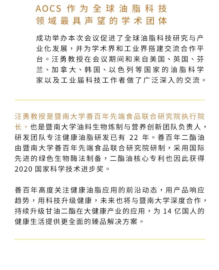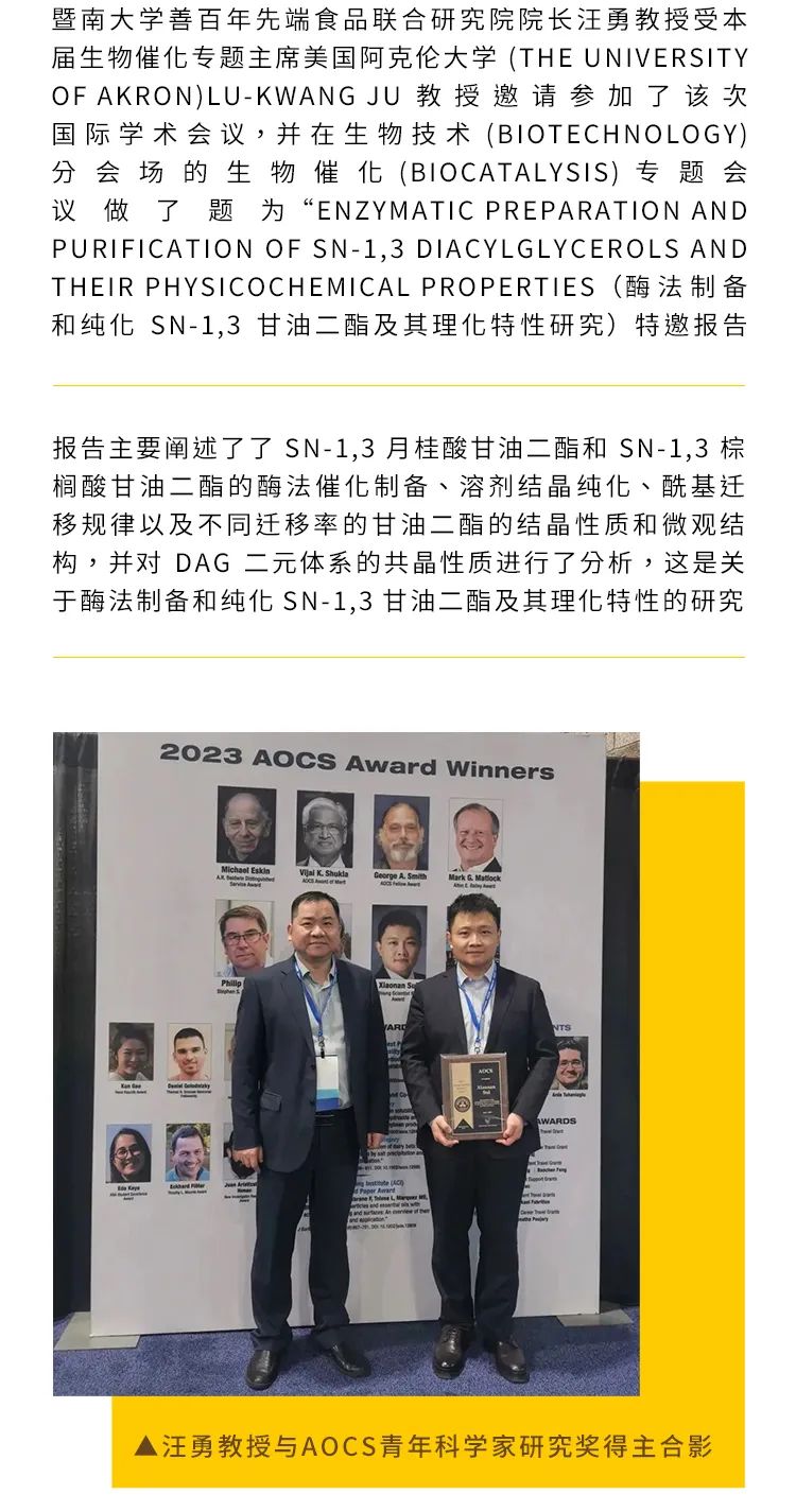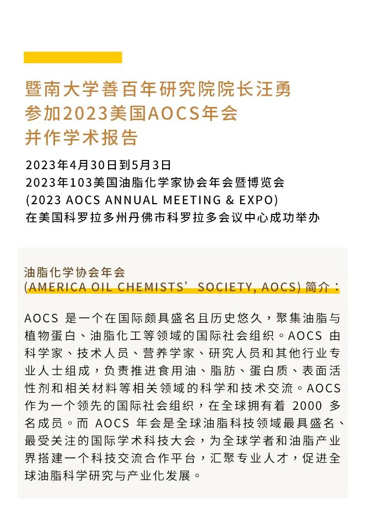 暨南大学善百年研究院院长汪勇参加2023美国AOCS 年会并作学术报告