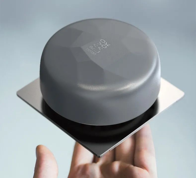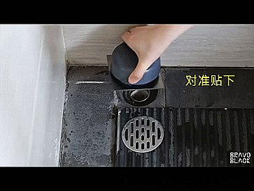 ②撕开碎发地漏上的纳米双面胶隔离膜,对准地漏孔位贴好