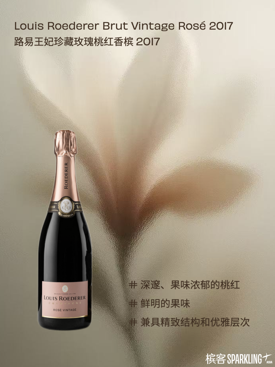 味道:香气复杂而深邃,成熟的黄桃、蜜渍柠檬的芬芳与杏仁酥、烤面包的醇厚气息交织。气泡细腻持久,入口圆润饱满,充沛的果味与富有线条感的酸度构建出惊人的张力。
