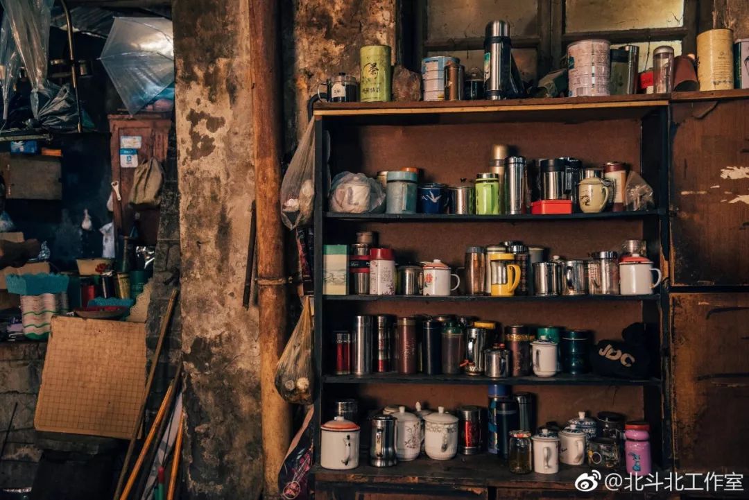 老式的吊扇,褪色的标语,满屋的老式条凳、方形老木桌,桌上随意摆放的长嘴壶与盖碗茶,时间仿佛凝固在上世纪六七十年代。