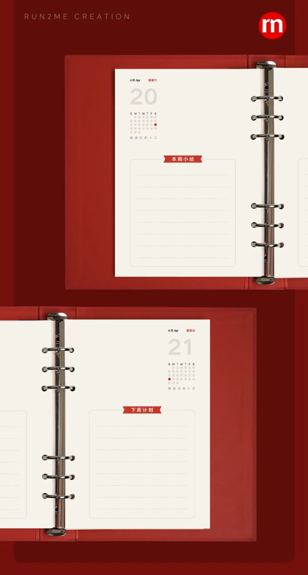 所以,我们把日历里每页的上半部分,都用较淡的颜色标注了日期,就是为了让它成为你的笔记本。
