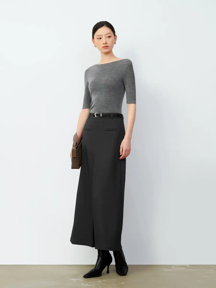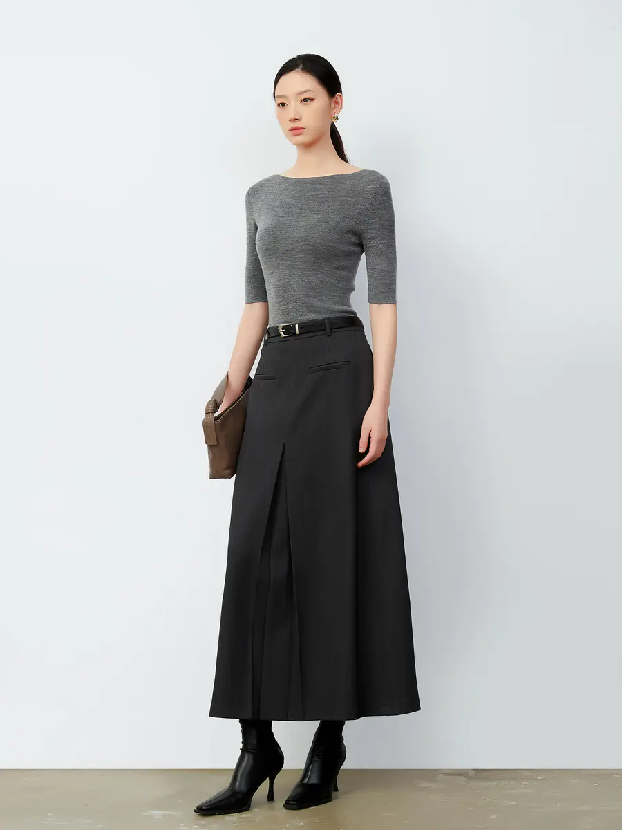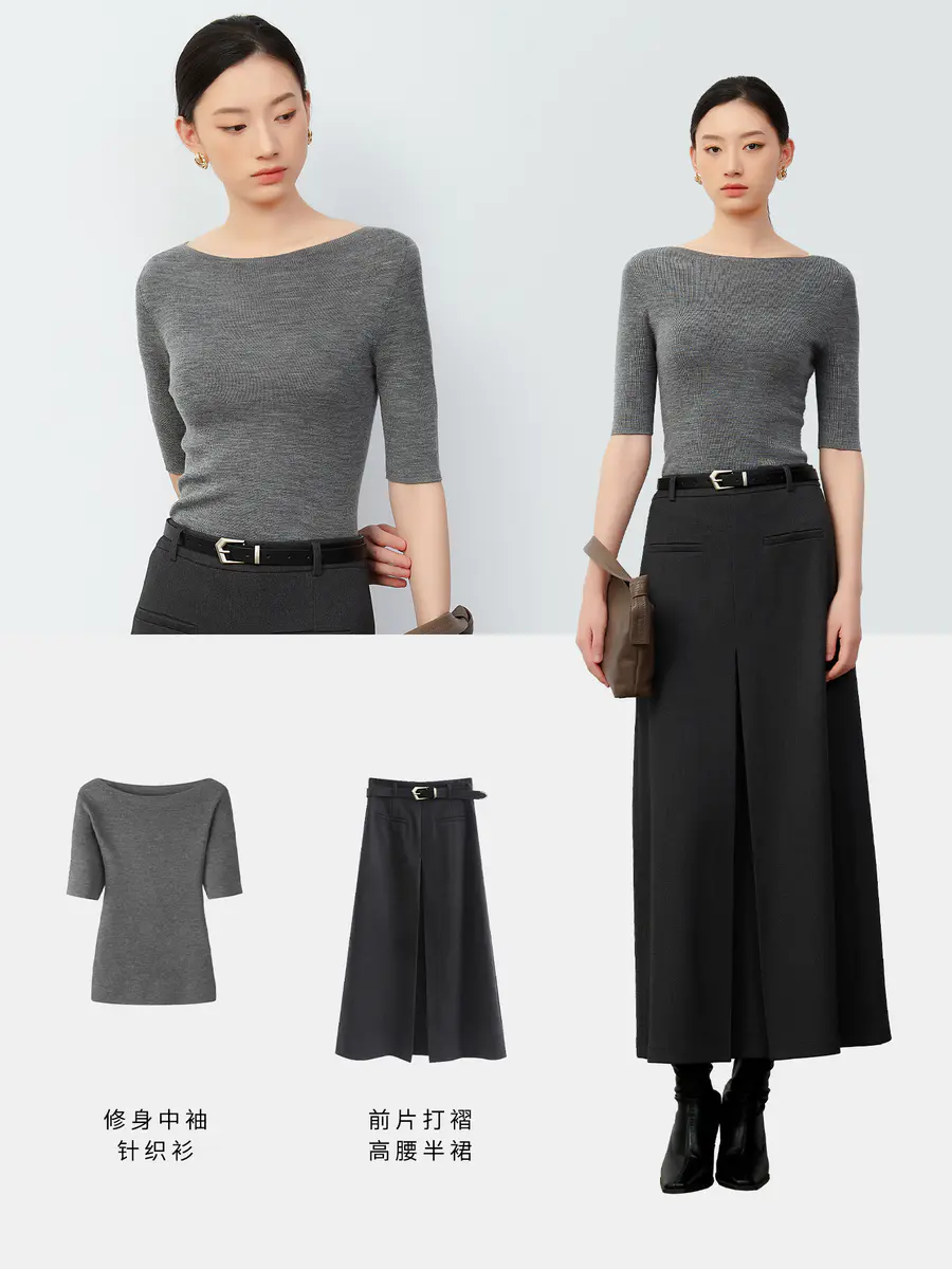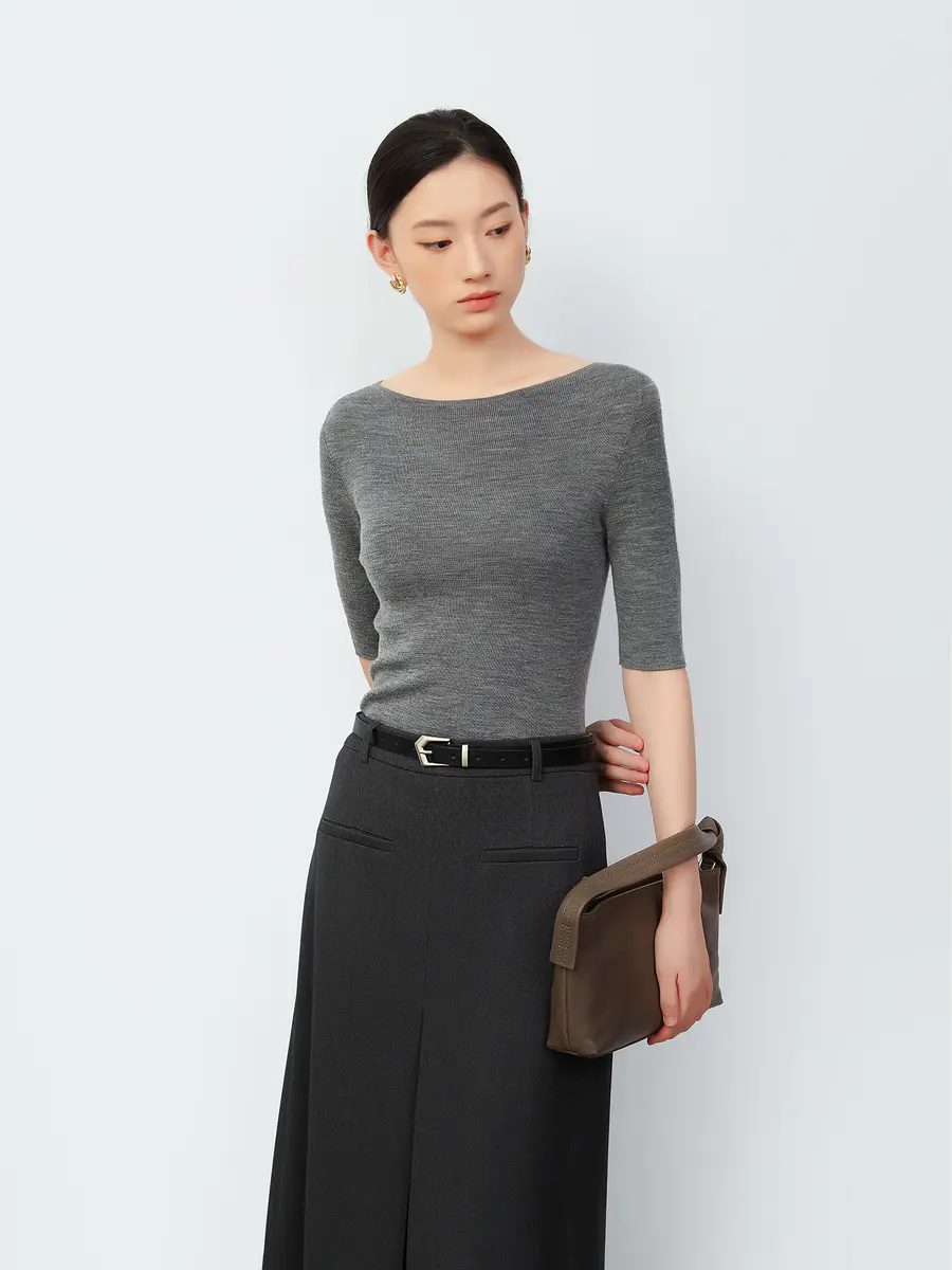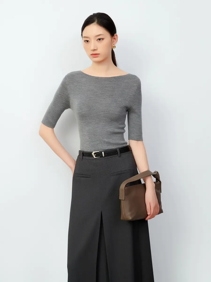 无缝成衣|All grey一字领纯色羊毛修身针织衫