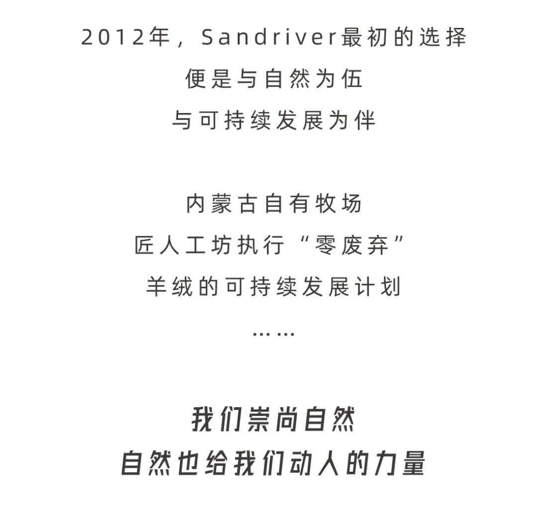 历年在巴黎时装周亮相,享誉世界的艺术羊绒品牌[Sandriver 沙涓]由羊绒布道者郭秀玲女士创立。阿拉善自有牧场纯种羔羊绒,日本国宝设计师小筱顺子,上海自有基地精工细作。承载羊绒情怀,坚持匠人品质。