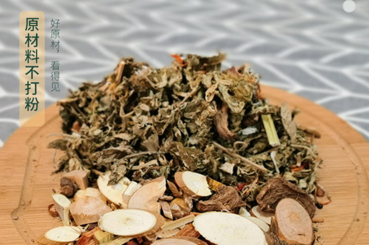 艾叶有温经散寒、祛湿暖宫的功效;老姜、桂枝、蛇床子有助于温阳散寒;益母草、丹参、红花可强化活血通经之效;红藤、鸡血藤可理气行血;桑枝利关节,可祛风湿;苦参、花椒则辅助燥湿、杀虫、止痒。