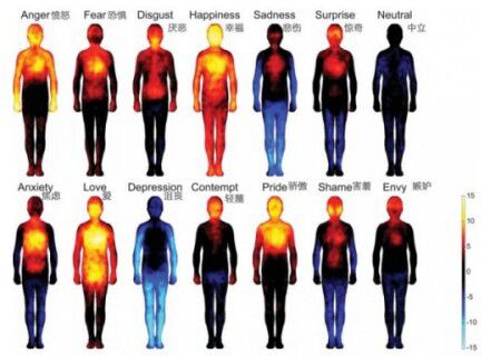 这是我们起情绪时身体各个部位的能量分布图