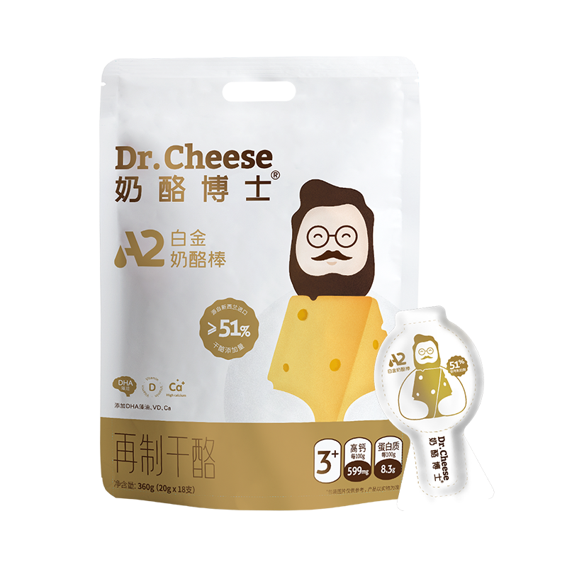 2020年,奶酪博士出了“了不起的钙钠比”和“干净配料表”的小圆奶酪,2021年,Dr.Cheese奶酪博士,又要来定义奶酪棒的“白金新标准”啦!什么才算“白金新标准”呢?