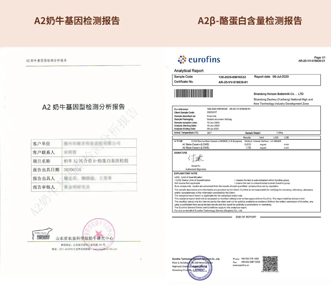附上A2奶牛基因检测报告和酪蛋白含量检测报告,大家放心购买哈~
