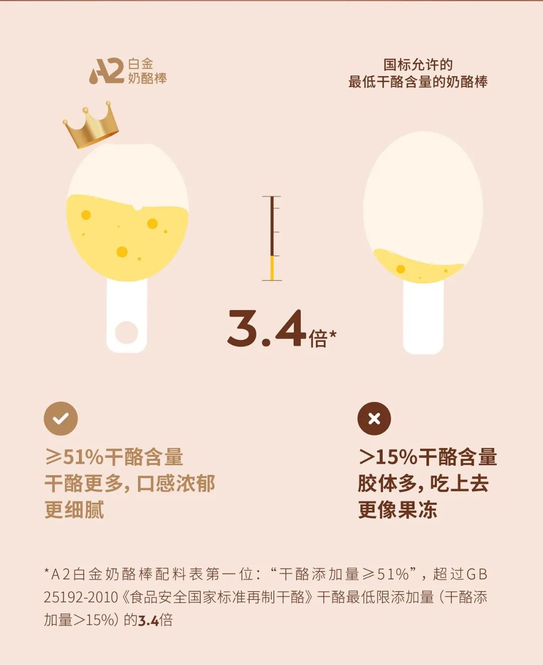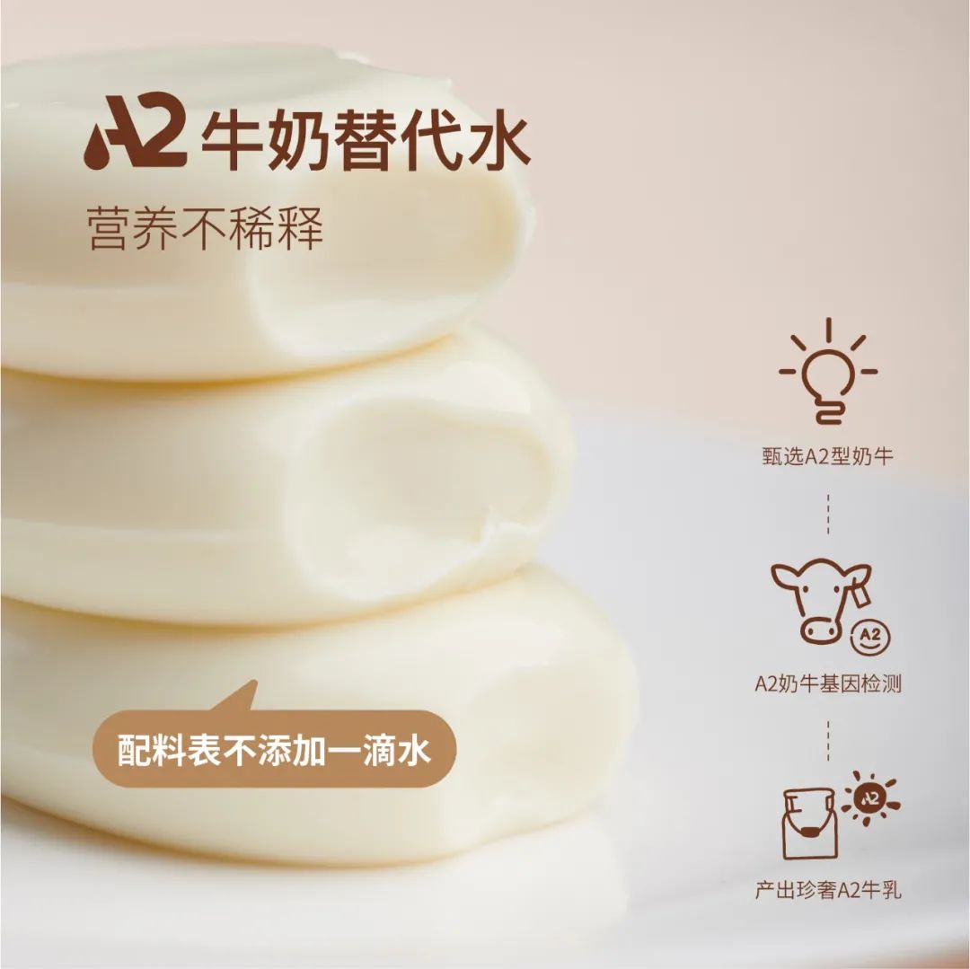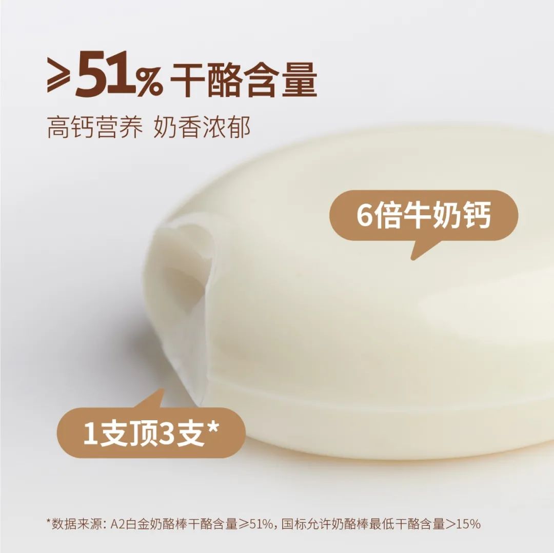 用更为珍稀的A2牛奶替代水,看似只是简单的原料调整,却为奶酪棒的品质,带来了颠覆性的改变!