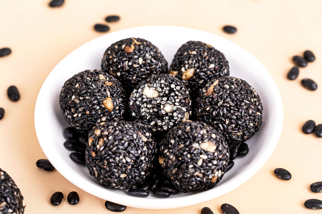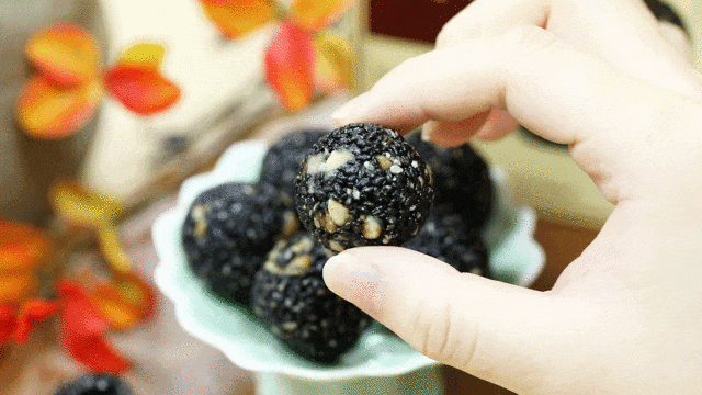 黑芝麻的香、黑豆的软、黑米的糯…这几种食物的优点和香味都融汇在这一颗小小的黑芝麻丸里了。