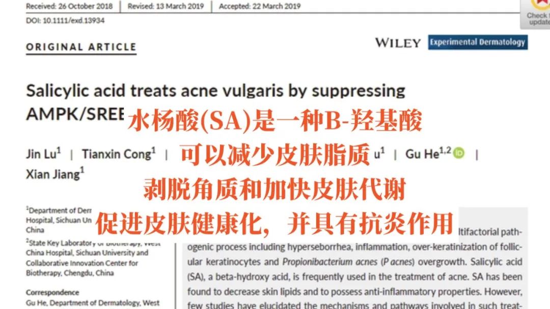 水杨酸是获得美国食品和药物管理局(FDA)批准可用于治疗皮肤炎症的活性成分。