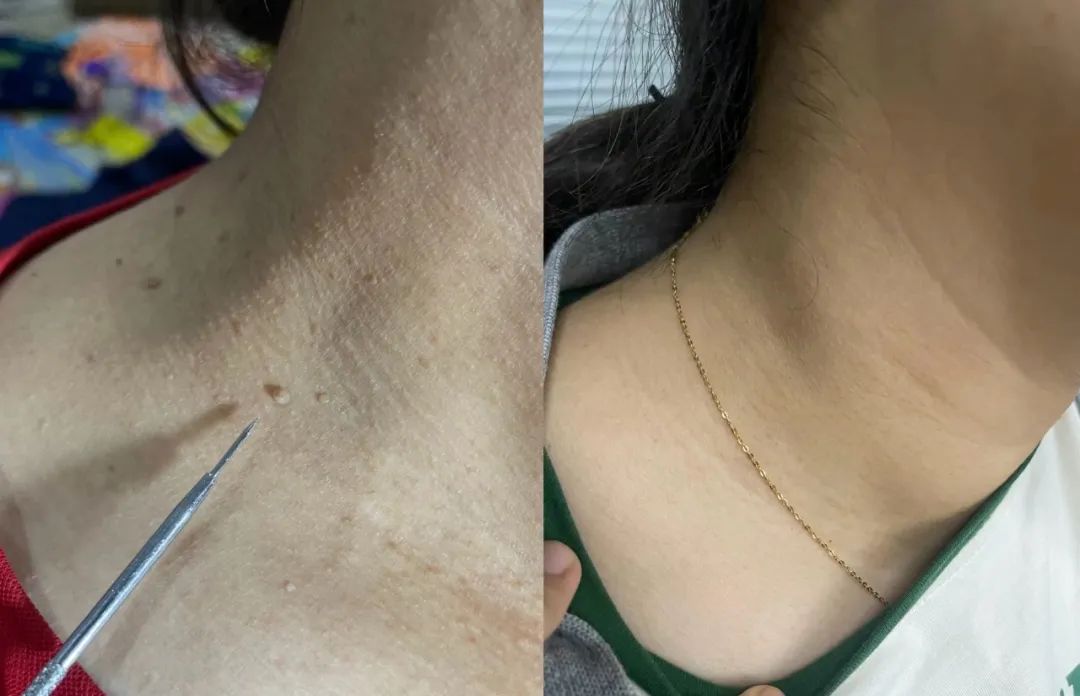 往往一开始只是略微有些凸起感,且大部分长在脖子和腋下,很多人都会忽视它,结果越长越大,越长越多,还开始往胸背和脸上蔓延,让人防不胜防!