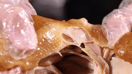 骨香鸡吃的时候不用切,骨头和肉已经自动分离了,鸡肉丝丝入味,好吃到让人舔手指。
