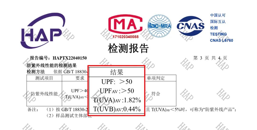 咱直接把检测报告拍在这了!对于日常生活穿着,这个指数已经完全够用了。