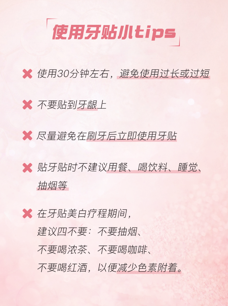 ✘ 贴牙贴时不建议用餐、喝饮料、睡觉、抽烟等