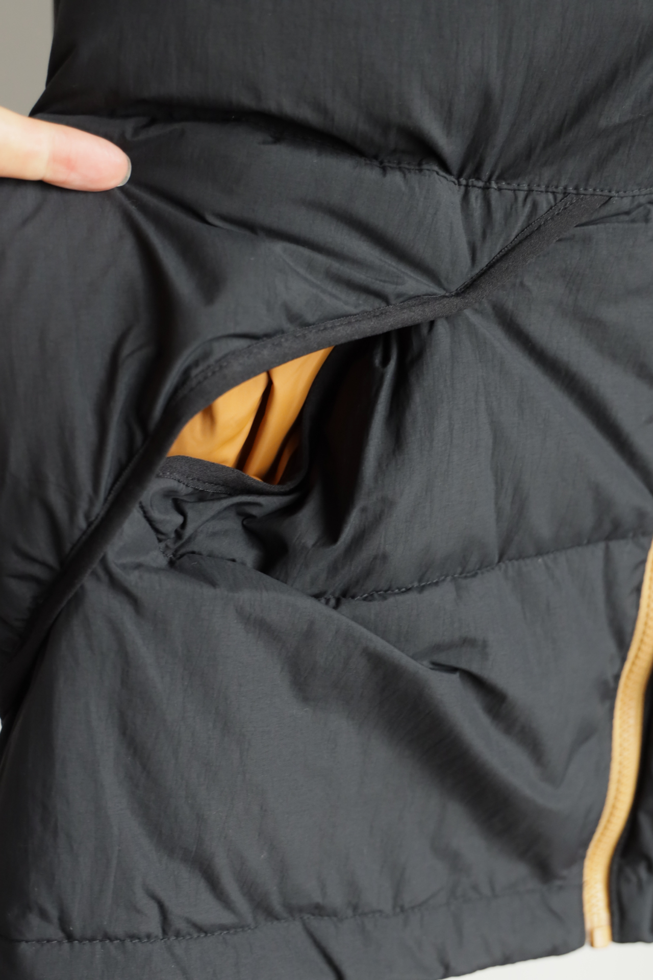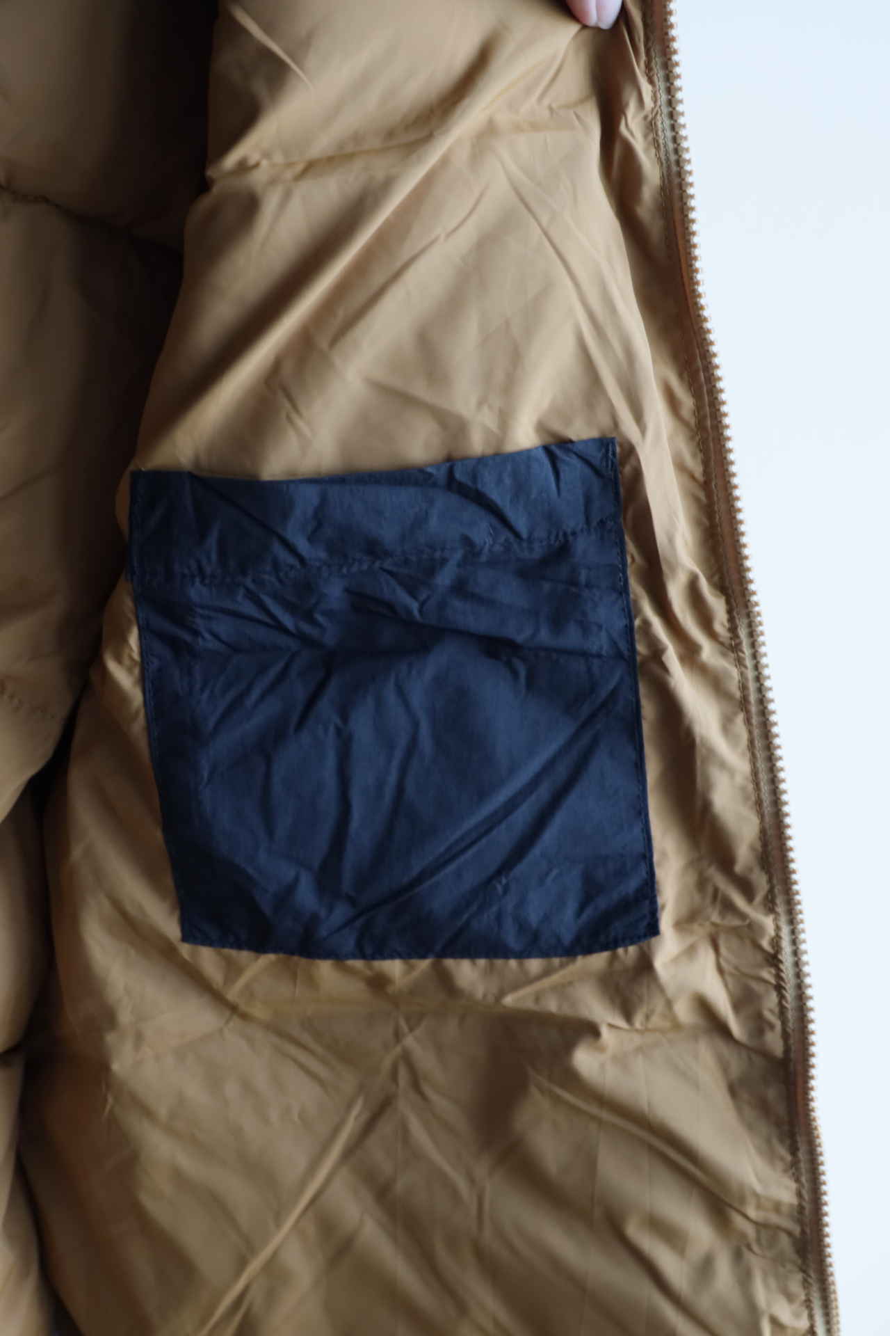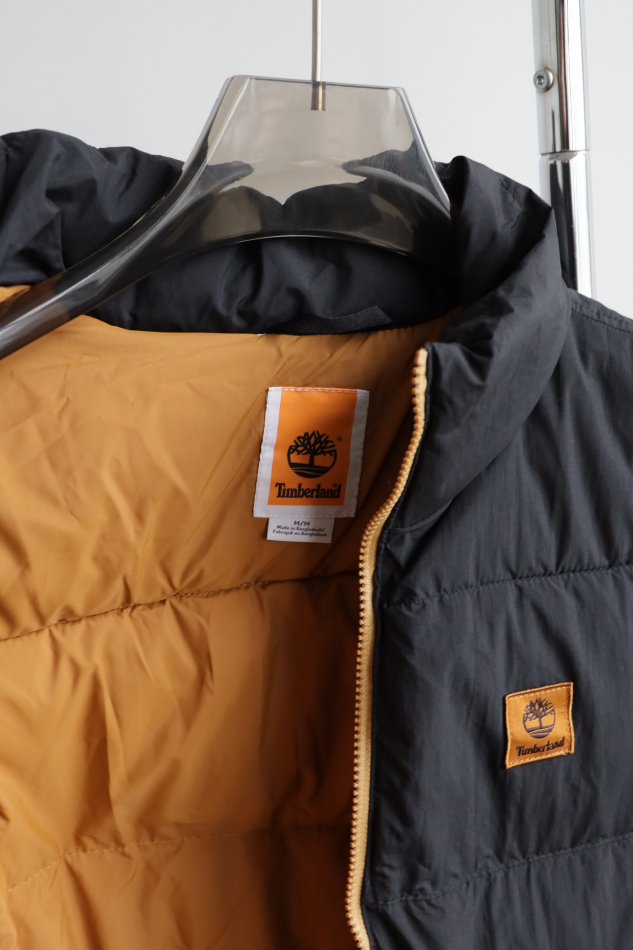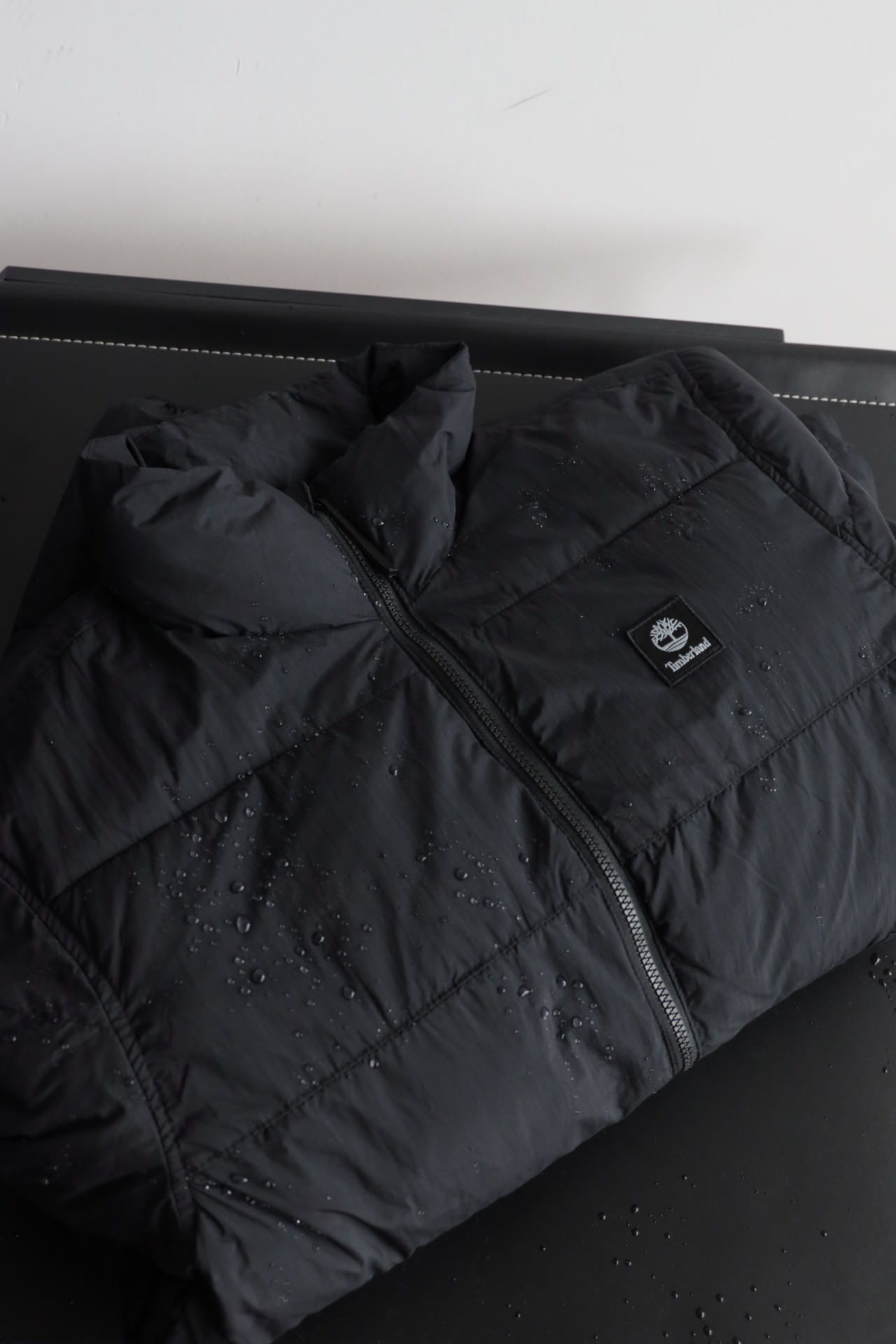拉链门襟,外层防泼水面料,内里夹棉,不是很厚,开春穿正合适
