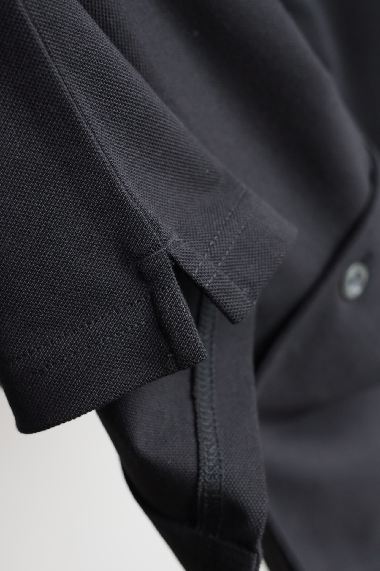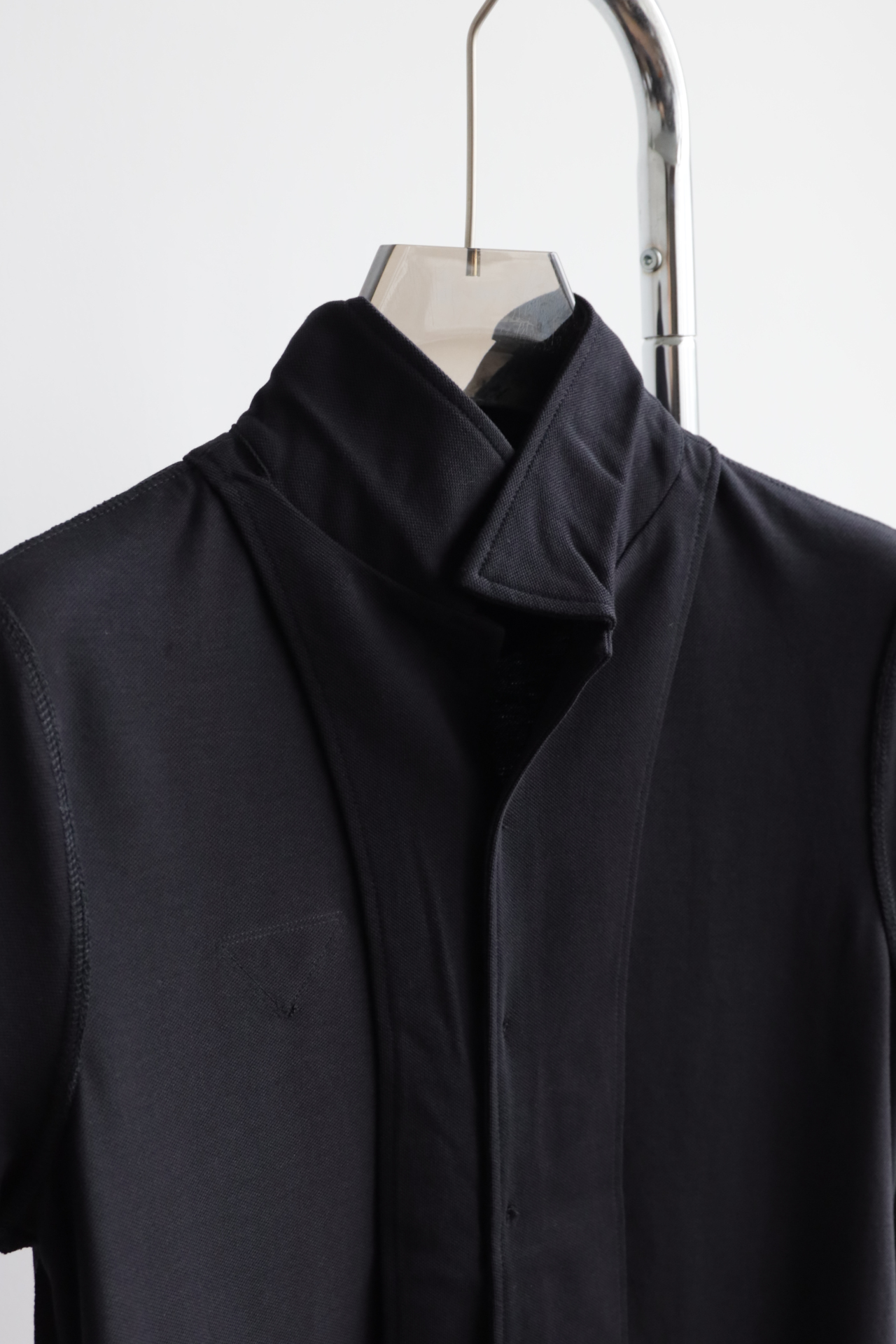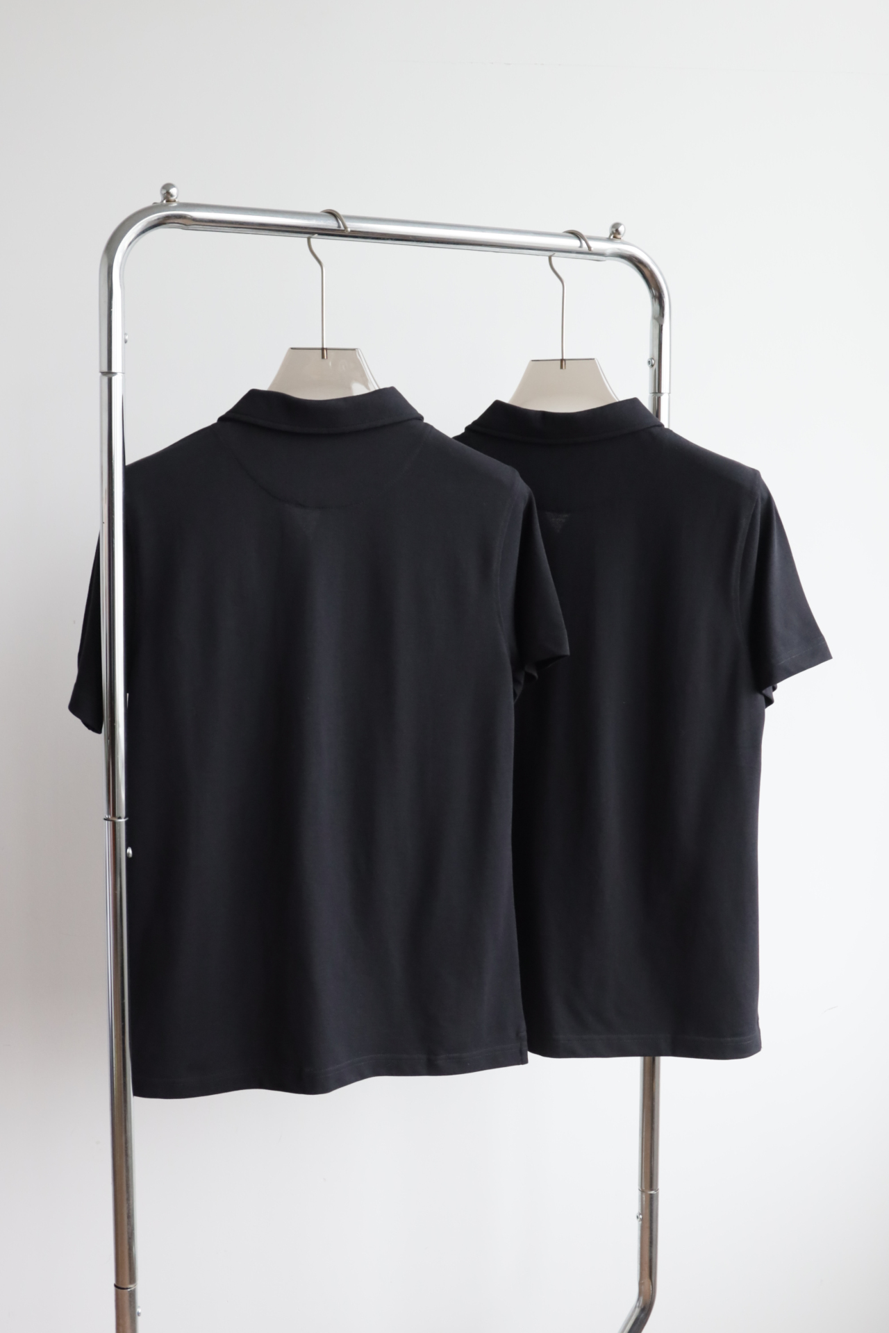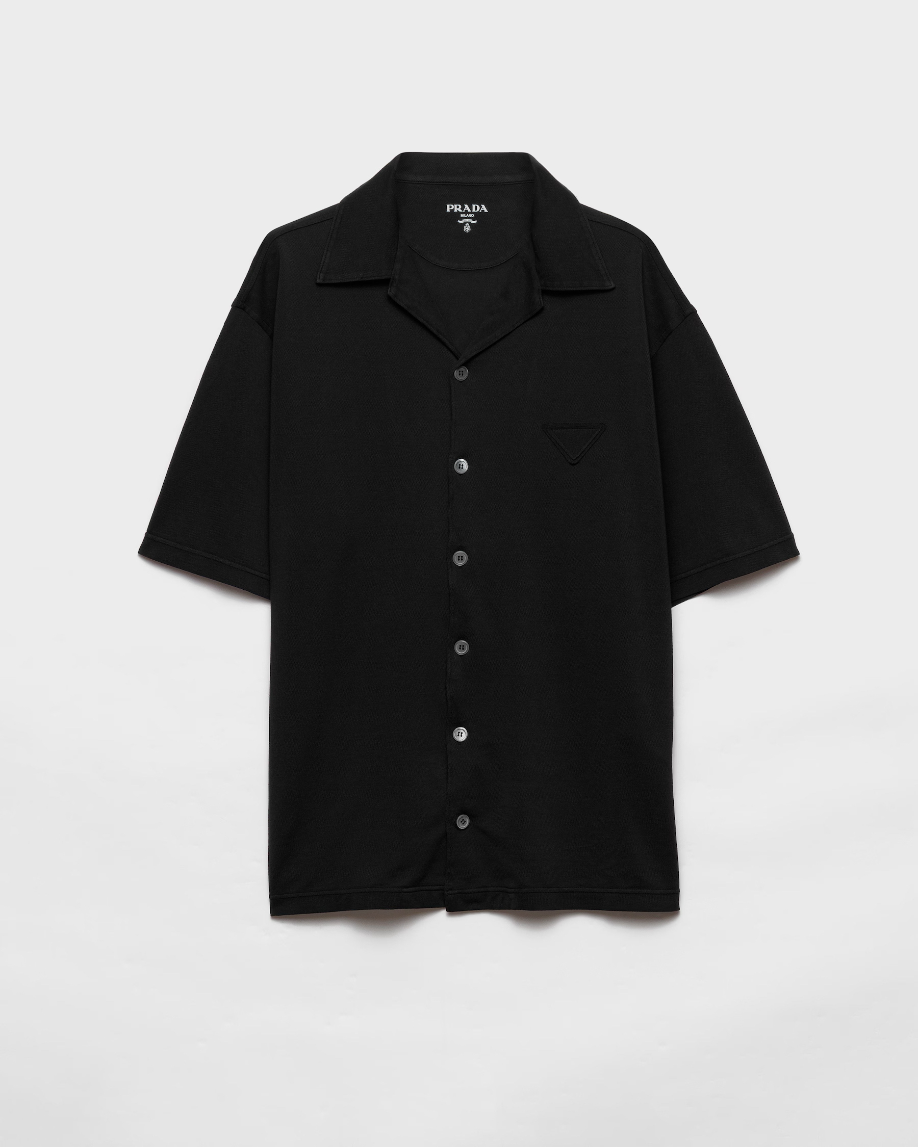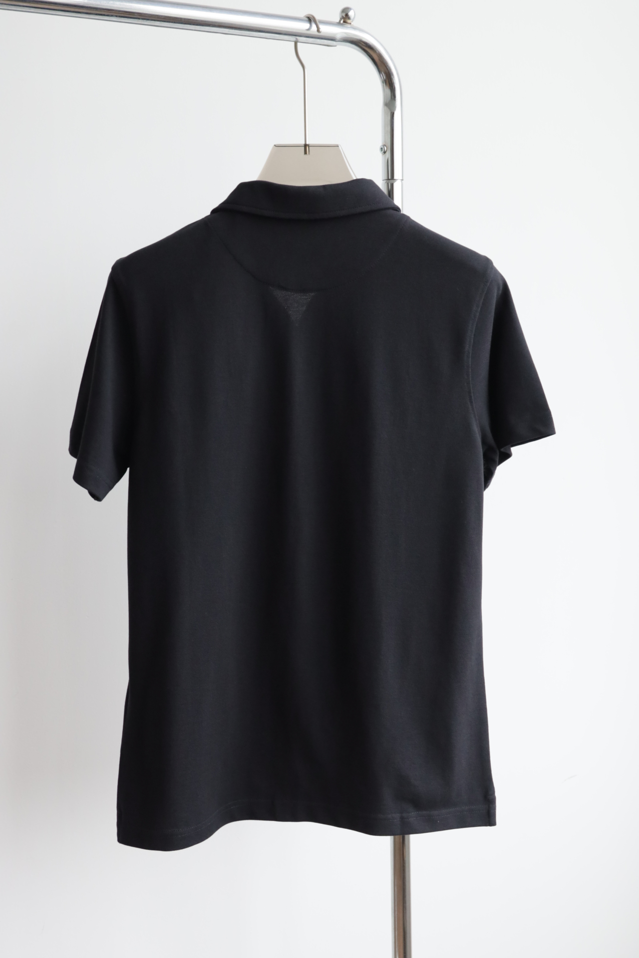 极简高级风黑色短袖衬衫,以利落剪裁重塑经典版型。贝母纽扣与隐形三角标低调呼应