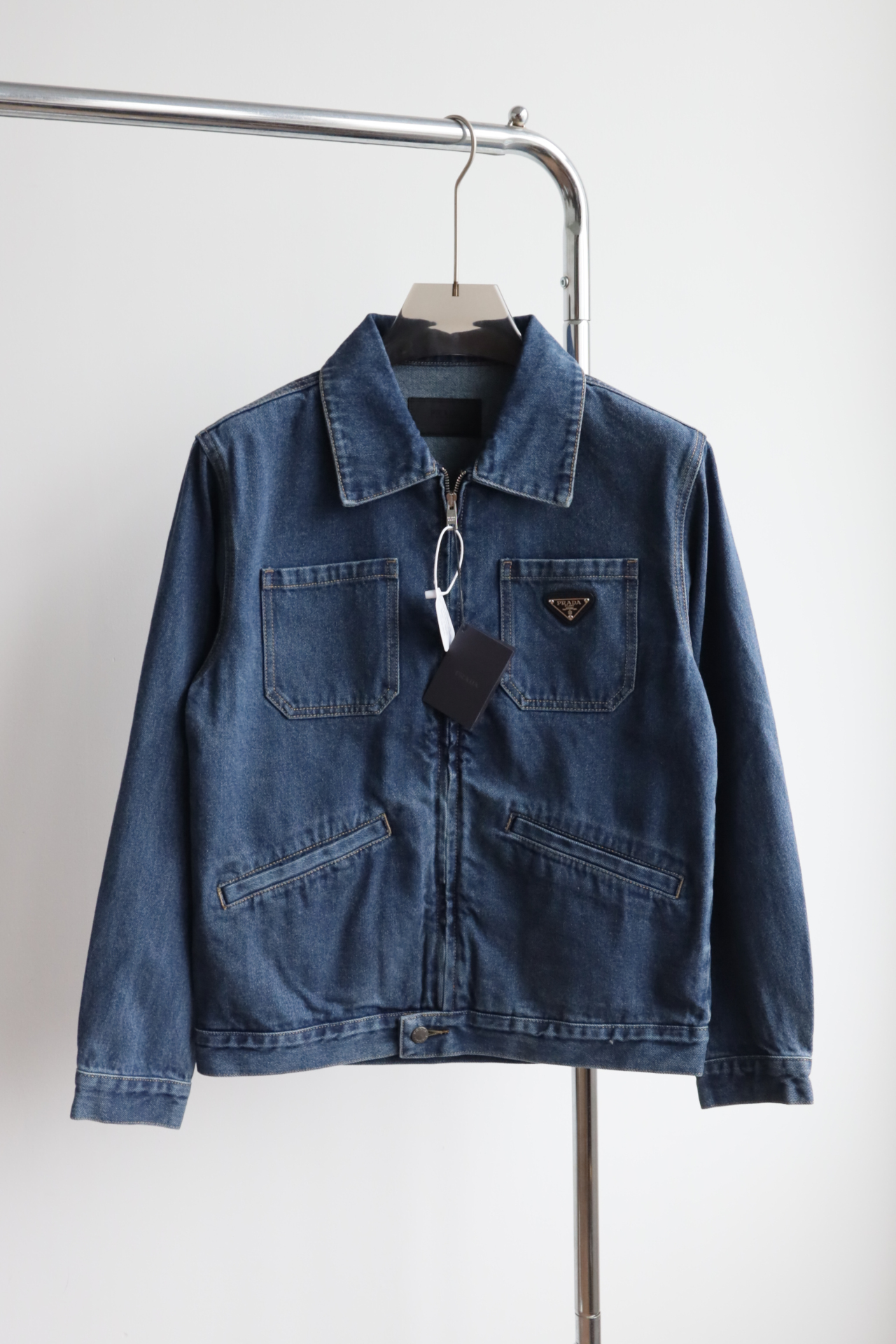 经典牛仔夹克,以做旧水洗丹宁重塑复古工装轮廓。倒三角徽标低调镌刻品牌基因,拉链门襟与多袋设计兼具实用与腔调,是衣橱里永不过时的质感选择。