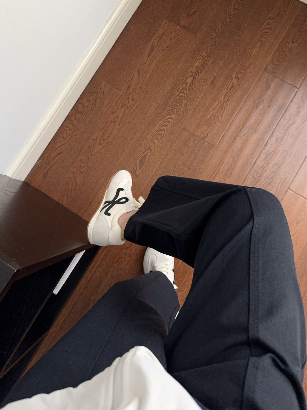 利落剪裁的黑色休闲裤,以垂坠感面料塑造利落线条,低调纽扣与隐形口袋设计,适配通勤、休闲等多元场景