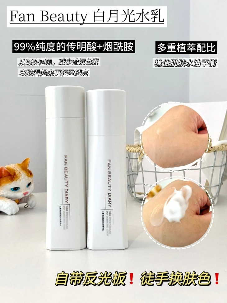 1⃣ 日常早晚护肤:轻拍Fanbeauty 白月光水-白月光乳