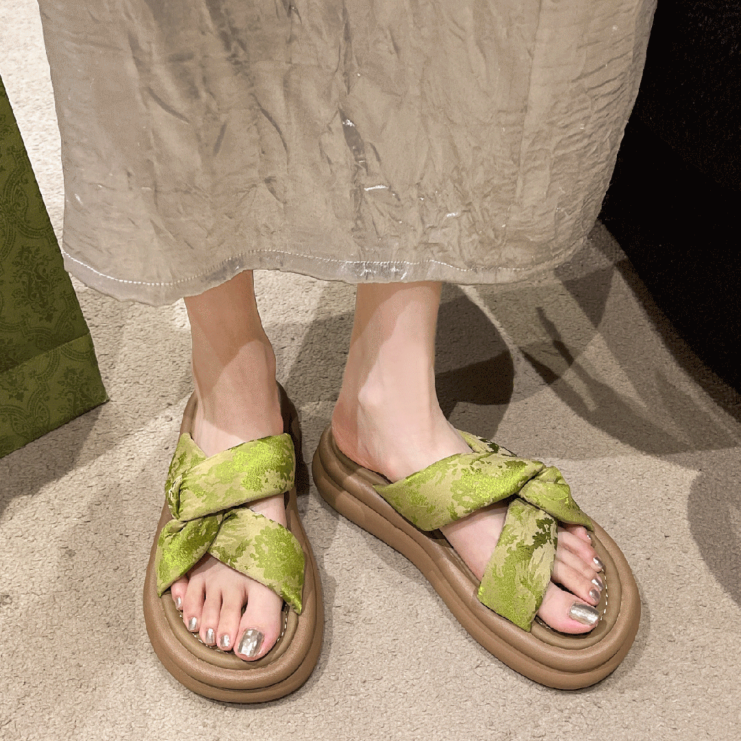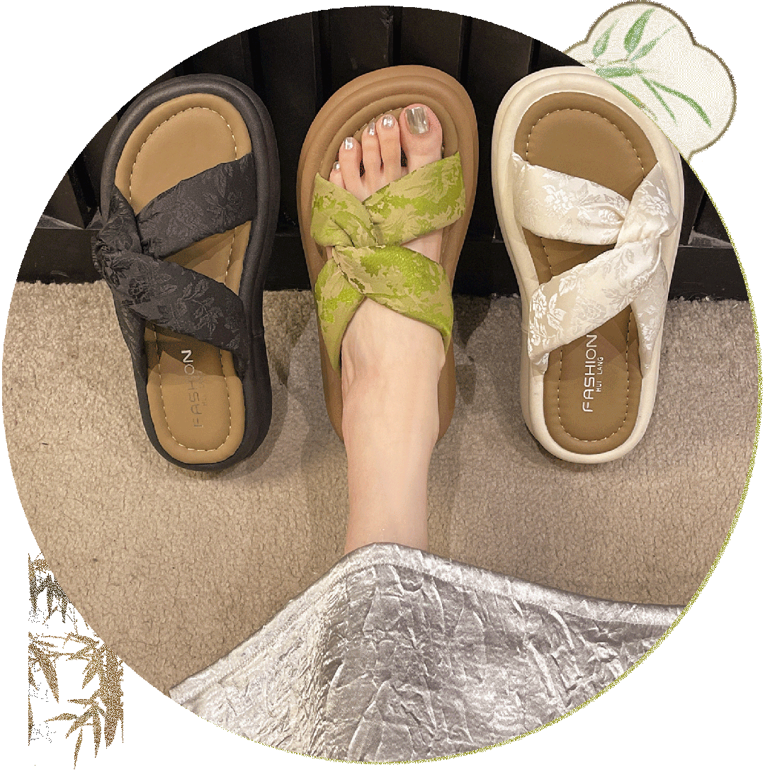 比起普通的纯色拖鞋,它的布艺面料自带一眼吸睛的魔力,好搭又不会“泯然众人”。