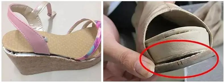 为了增高显气质买了双小高跟凉鞋,明明买前上脚试着还行的凉鞋,穿没几天开始脱胶变形。