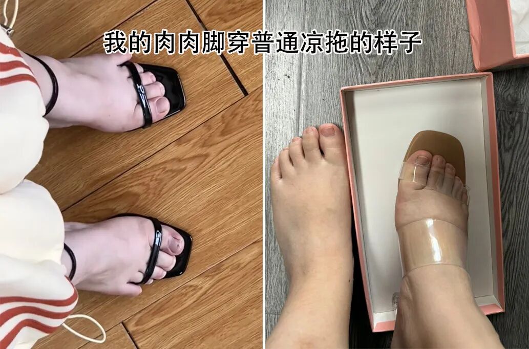 开始我还在担心:像我这种穿凉鞋必踩坑的肉肉脚,穿上真的不会显得像两个大猪蹄子吗!?