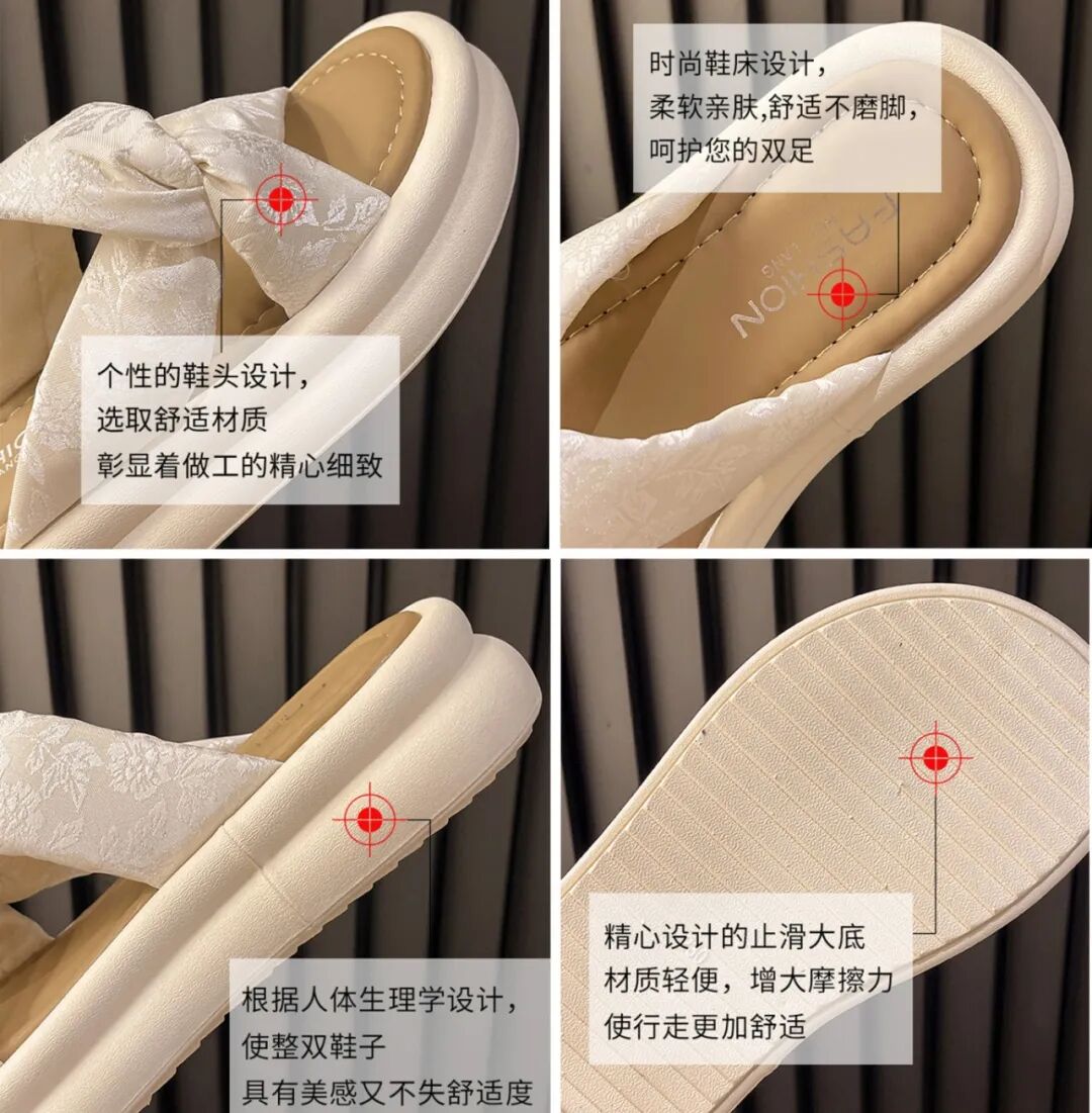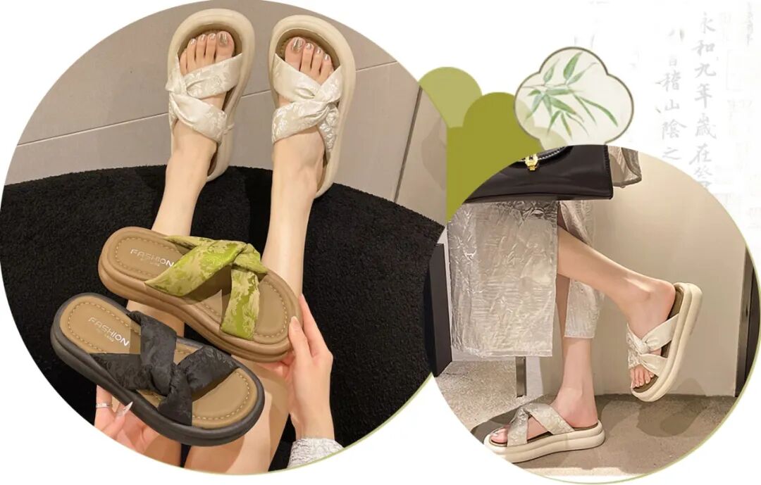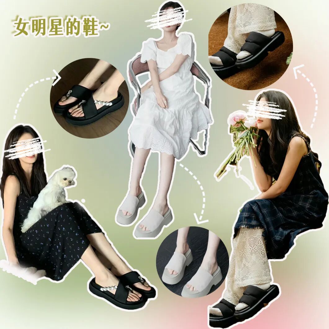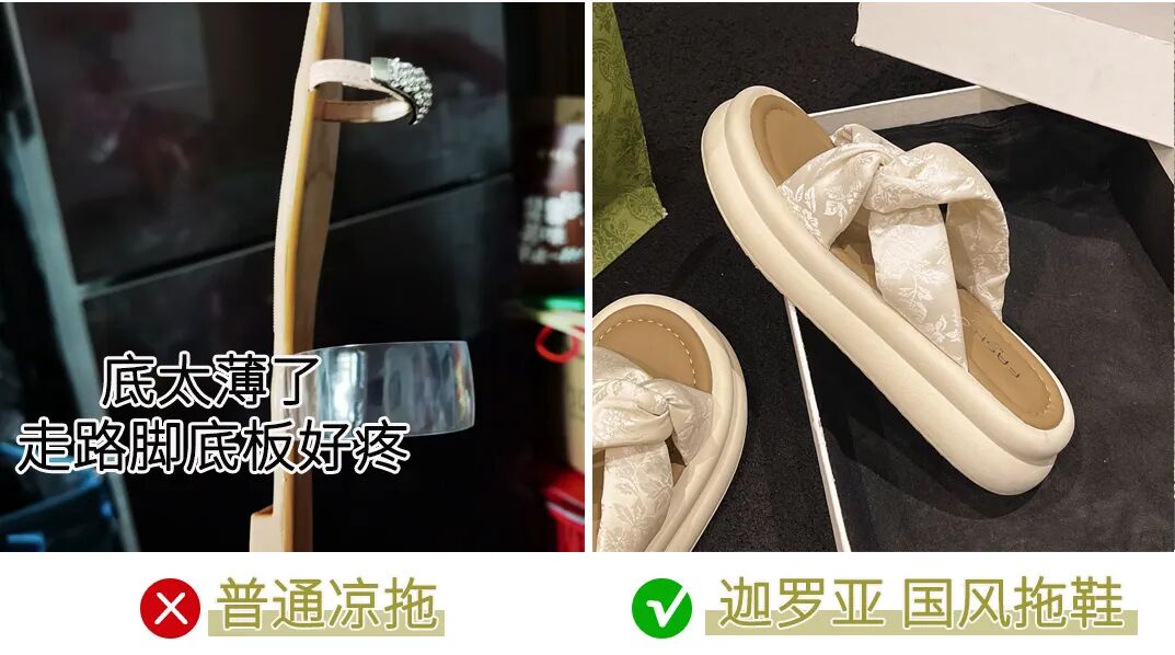相比起那种走几步路就硌得脚疼的薄底拖鞋,我更中意这种能稳稳“托”起双脚的厚底款。