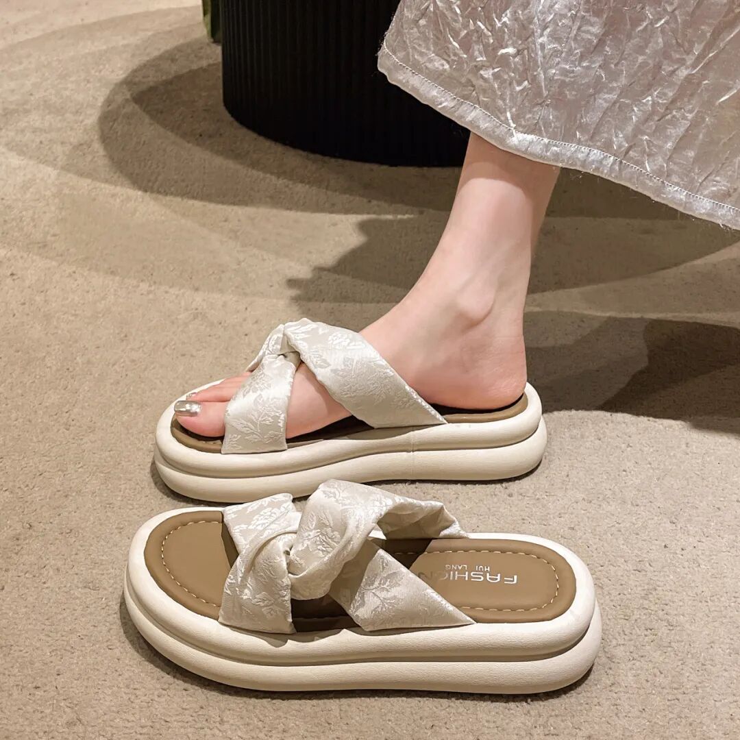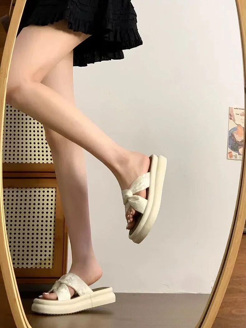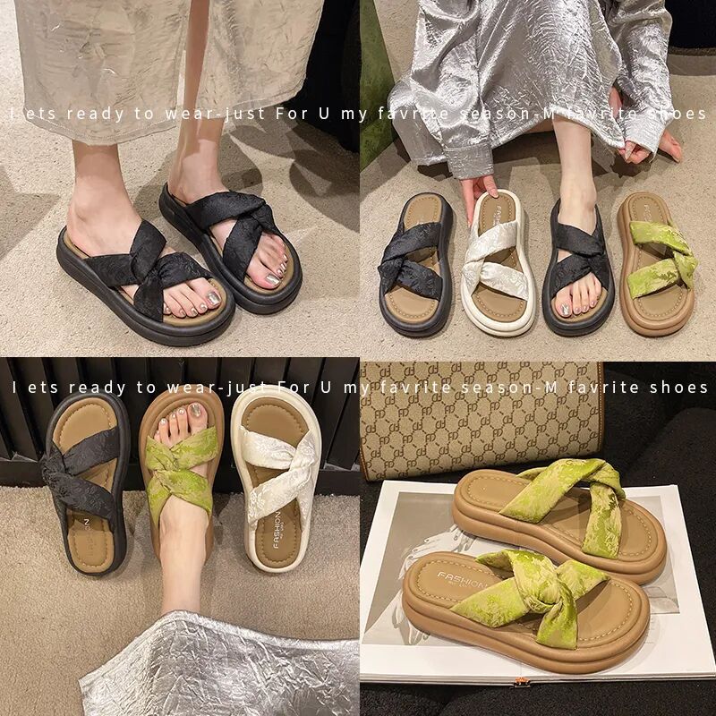 相比起那种走几步路就硌得脚疼的薄底拖鞋,我更中意这种能稳稳“托”起双脚的厚底款。