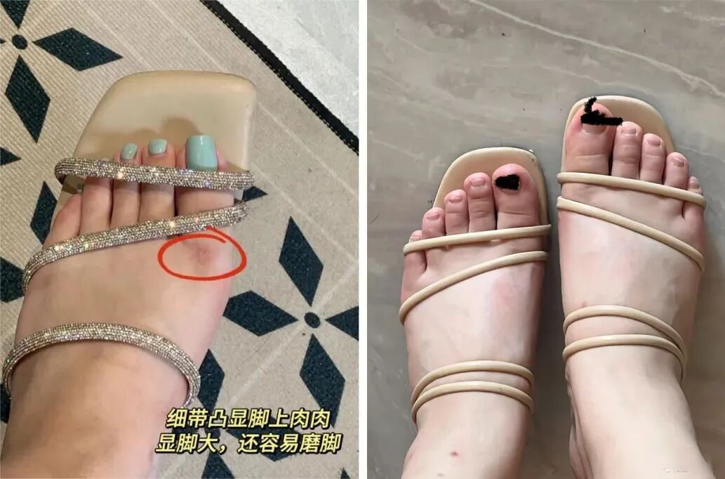 这两年很火的系带款凉鞋,但凡不是秀气的“瘦脚”,一秒就能变身“大肉粽”。