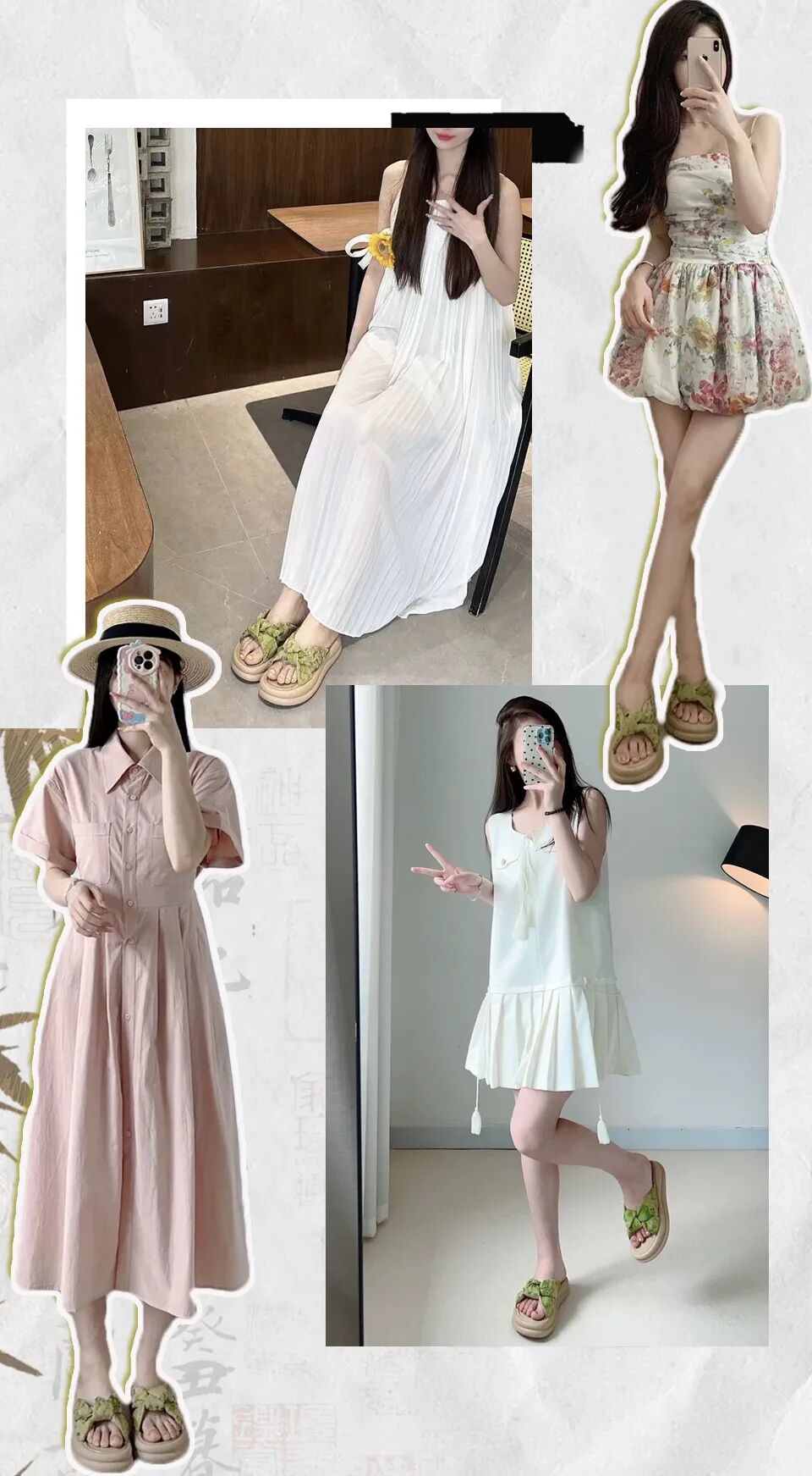不敢穿普通的平底凉鞋是怕显得人更矮腿还短,但这双适当的露肤+小厚底真的是出乎意料的显得个子高,搭一条高腰小裙子,绝美!!!