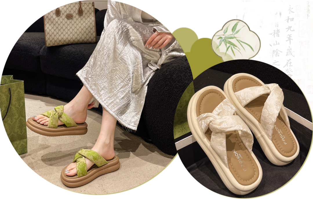 经过多款试穿、开选品会、分批试穿,定下了这一款主打国风又超级平价的小鞋子,我真是恨不得扛着种草大旗怒吼推荐一番!