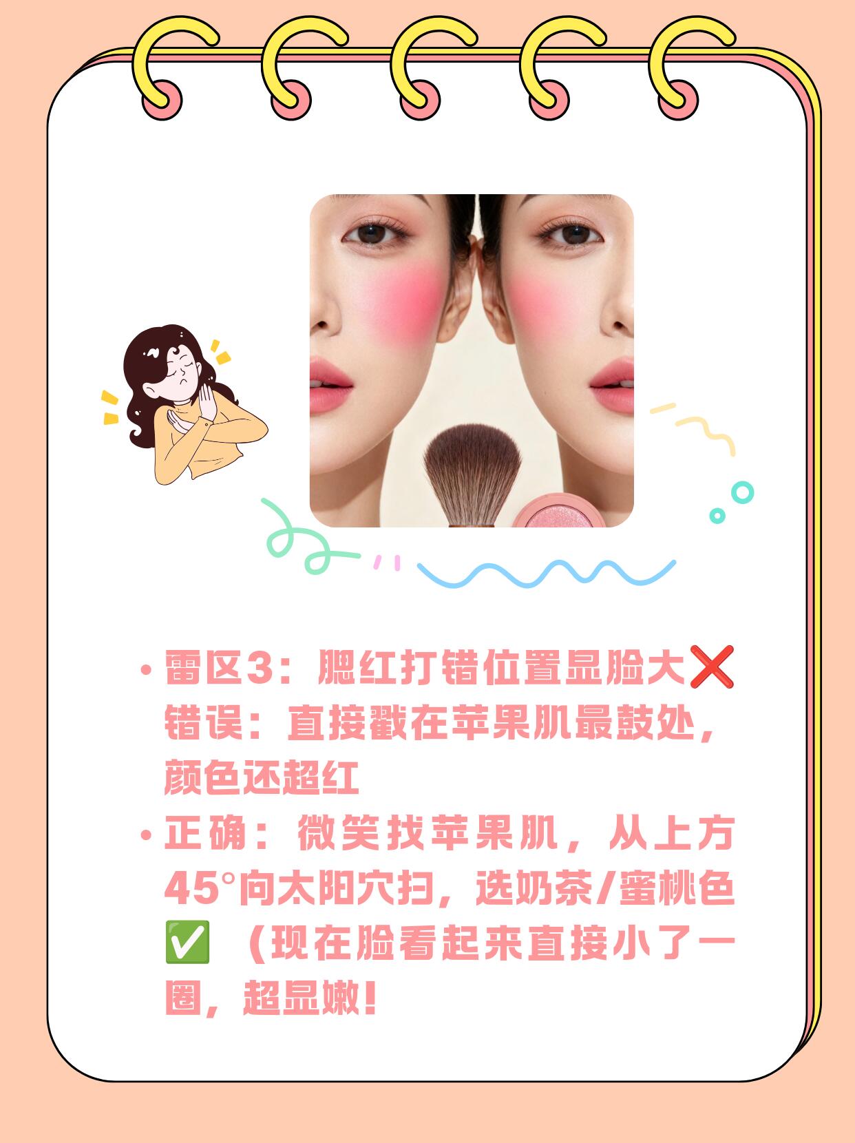 ❌ 雷区3:腮红打错显脸大