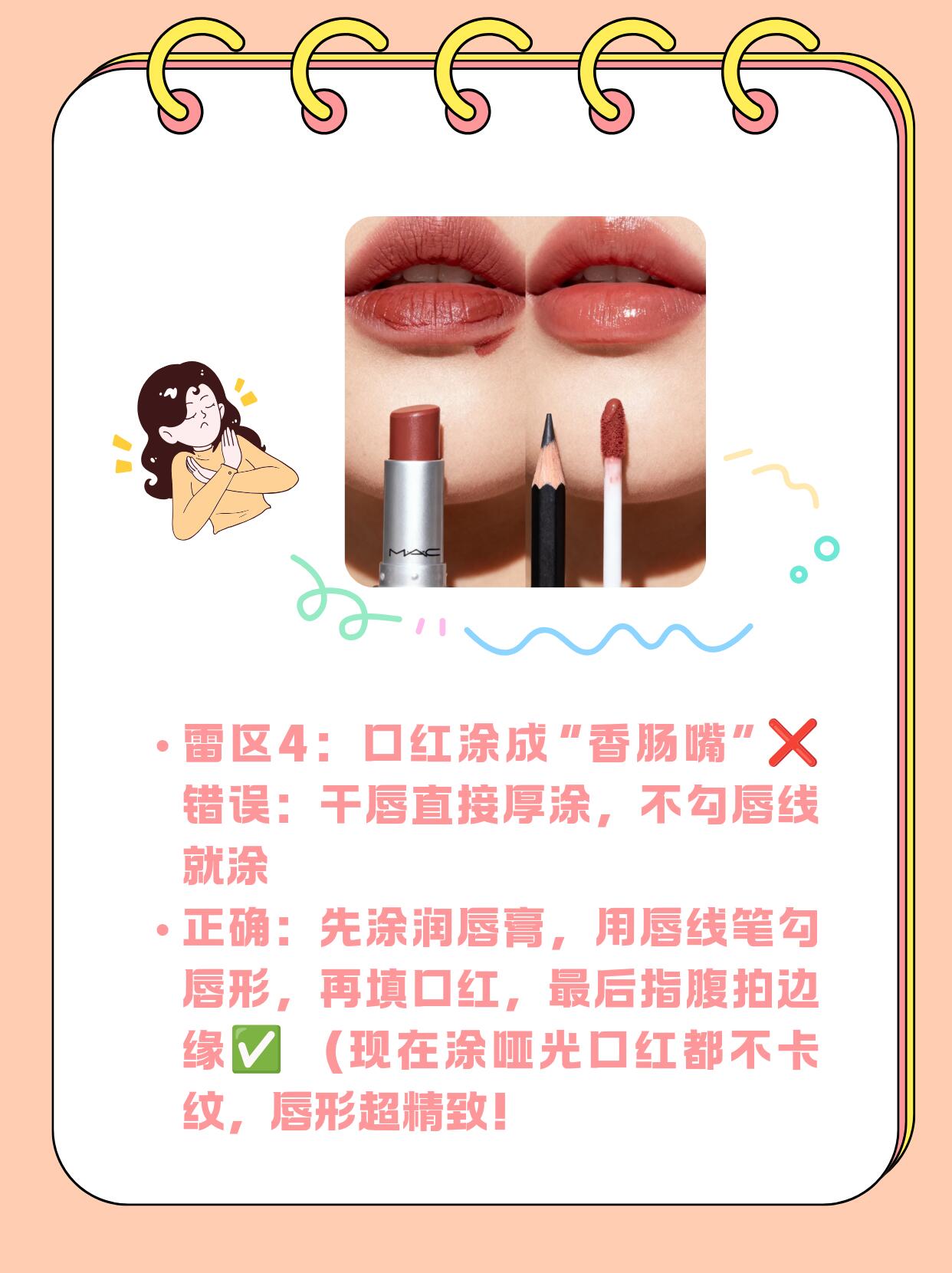 ❌ 雷区4:口红涂成“香肠嘴”
