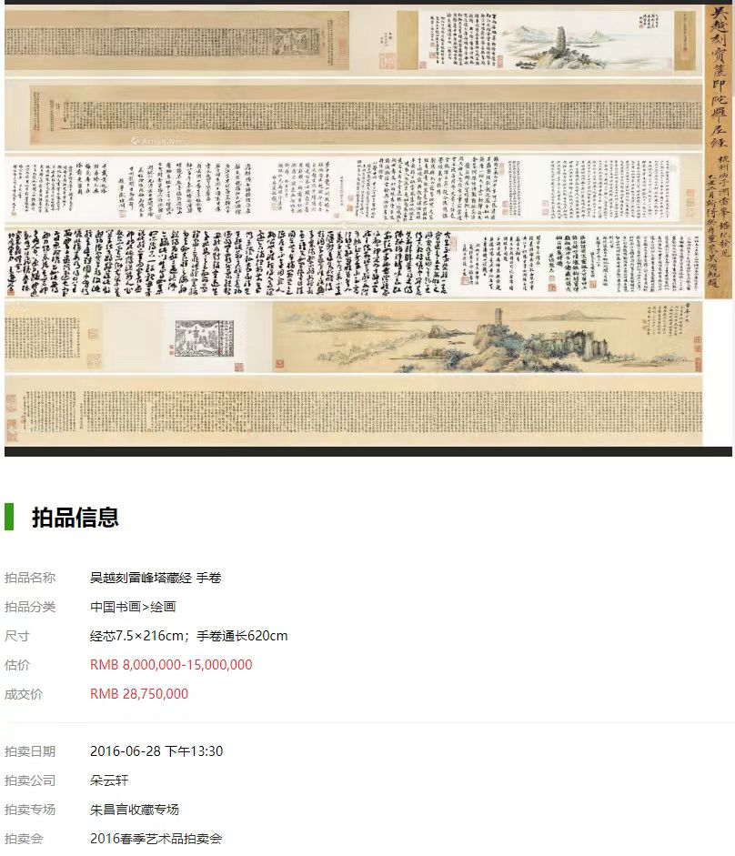2016年朵云轩拍卖,拍出2875万元的天价吴湖帆旧藏雷峰塔经,就是吴湖帆花了500大洋从陈曾寿处购得的!