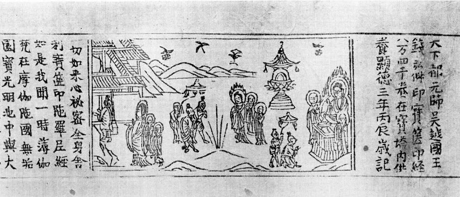 北宋开宝八年(975)造雷峰塔,刻宝箧印陀罗尼经。
