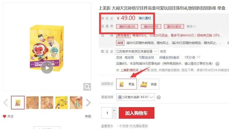 单枚纪念章、纪念券划下来仅12.3元,要知道,上影美出品的《大闹天宫》一个钥匙扣周边售价都要49元了!