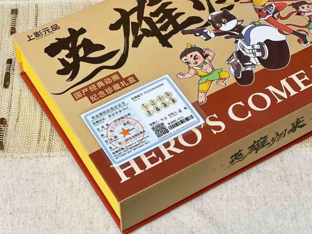 这款礼盒由上美影发行,纪念章表面镀金,拥有鉴定证书,正品保证,可放心珍藏。