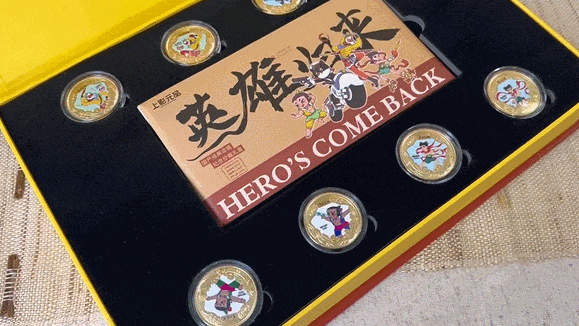 《英雄归来》国产经典动画纪念珍藏礼盒中的每一枚纪念章都是经过数道工序精制而成,以合金作为主要原材料,削去表面杂质,确保表面无任何划痕与污染;