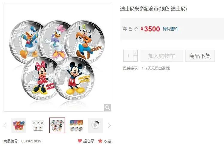 要知道,同样以动画片发家的迪士尼当初2008年发行的10元米奇纪念银章,现如今二手市场价格高达3500元!短短16年间价值暴涨350倍,全套集齐价格更是高昂到无法企及!