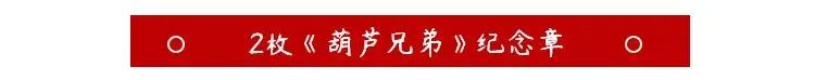 套装中含《葫芦兄弟》纪念章2枚,纪念章上选的是喷水的五娃和奔跑中的四娃形象,将剪纸风格完美还原,把善良勇敢的娃娃们永久收藏。