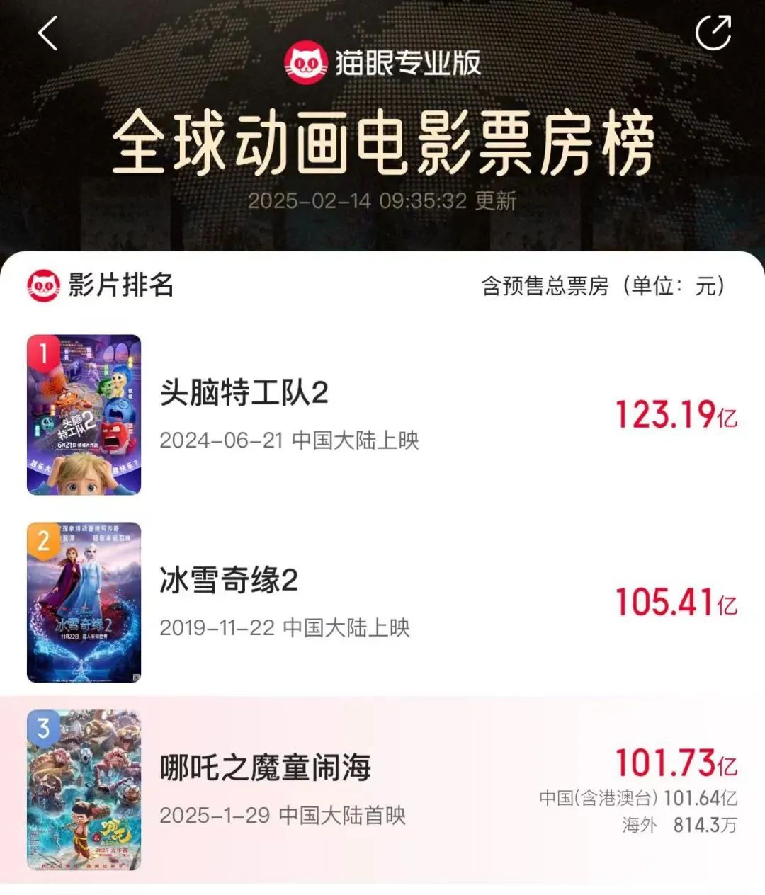 不仅在国内票房霸榜,还跻身进入了全球影史票房榜前20名,暂列全球动画电影票房第三名!