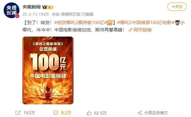 票房已登顶中国影史票房榜!就连央视都在报道,太炸裂了!