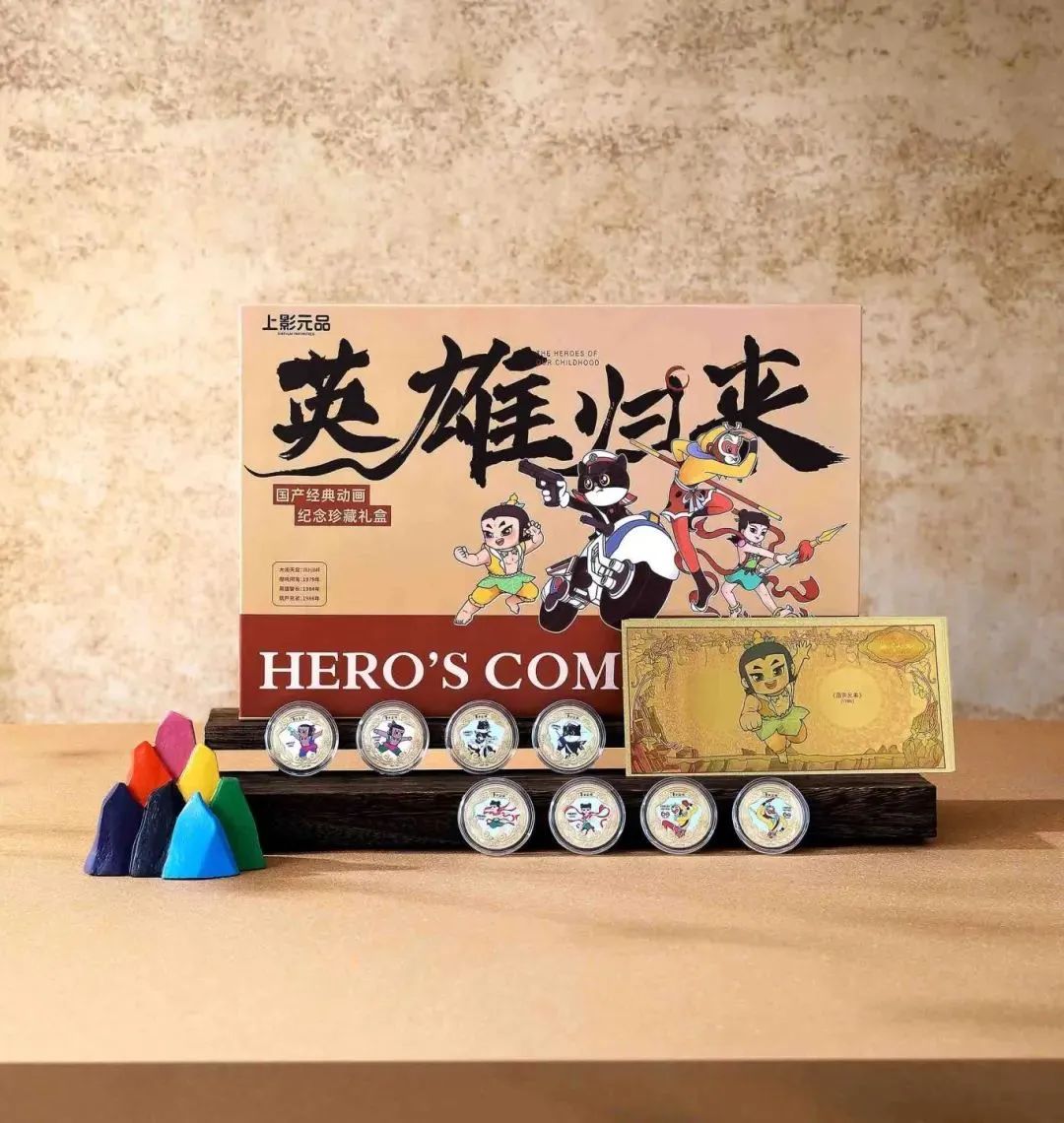 本次发行的《英雄归来》国产经典动画纪念珍藏礼盒可以一次集齐4部上美影高光经典动画的8章8券,无疑是史无前例的高收藏价值!