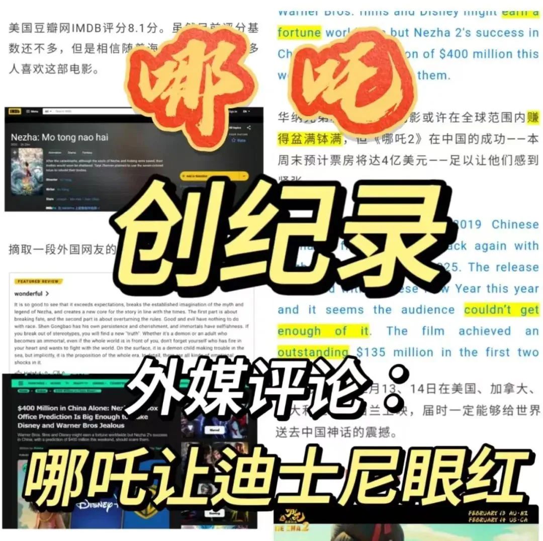 这是中国电影界史诗级的里程碑,打破了全球动画片票房前10榜单上好莱坞影片的垄断,让所有中国人为之骄傲,为之沸腾!