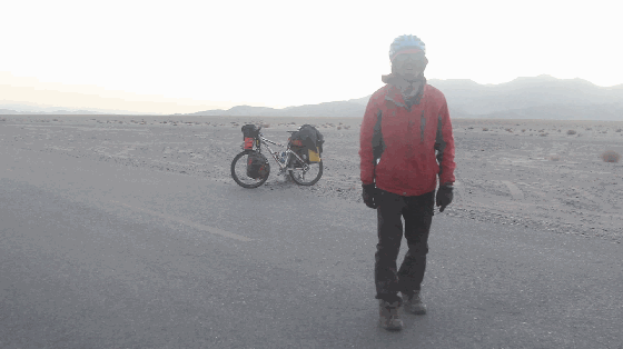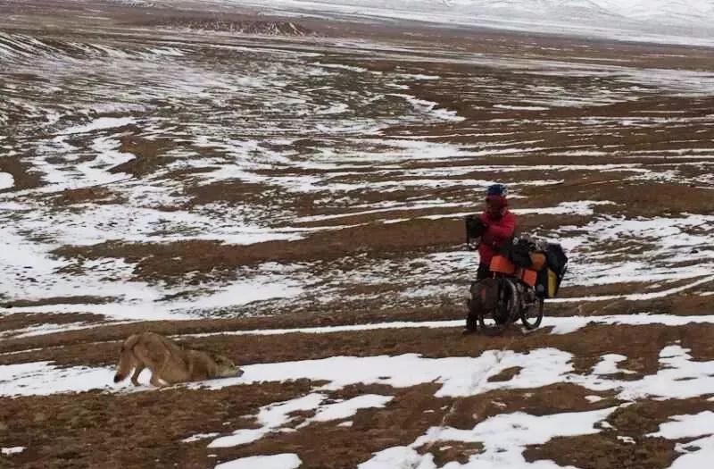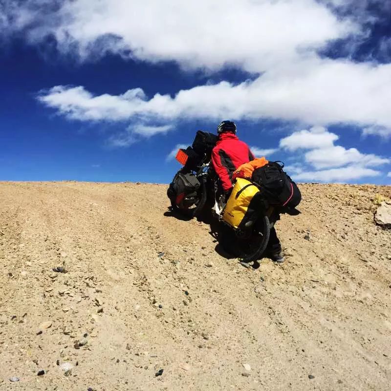 但高原干燥多风,根本不会愈合,搞不好伤口会越来越大。车太重,又多沙土地,骑车很费劲,有些地方一口气只能骑50米,甚至十几米。十几天后,脚后跟被磨得血肉模糊,只能忍着继续走。